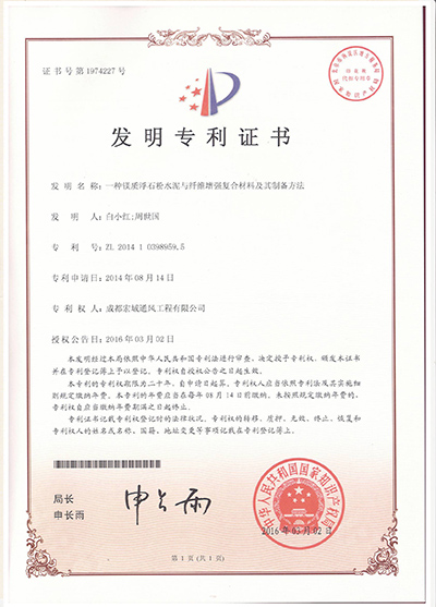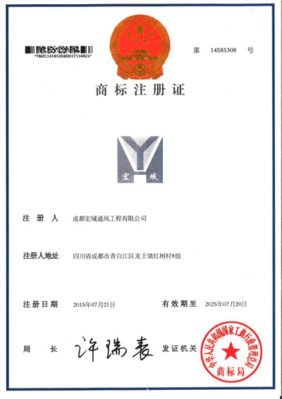 宏域通風發明專利證書